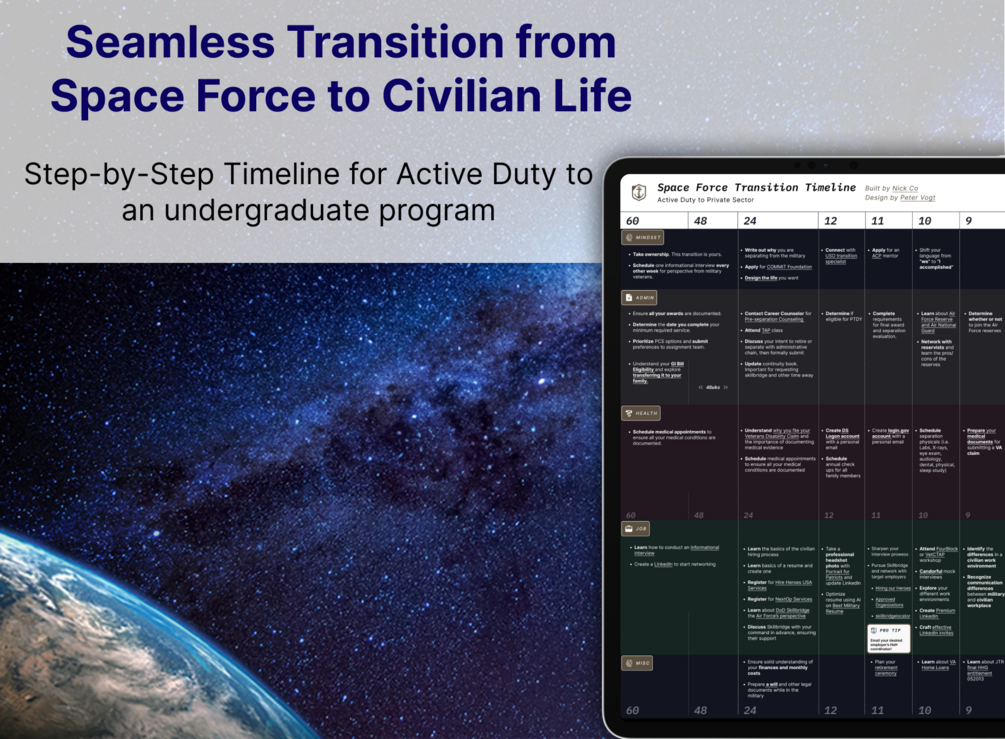 Accelerate your transition with the Premium Space Force Veteran Timeline. This enhanced version includes: